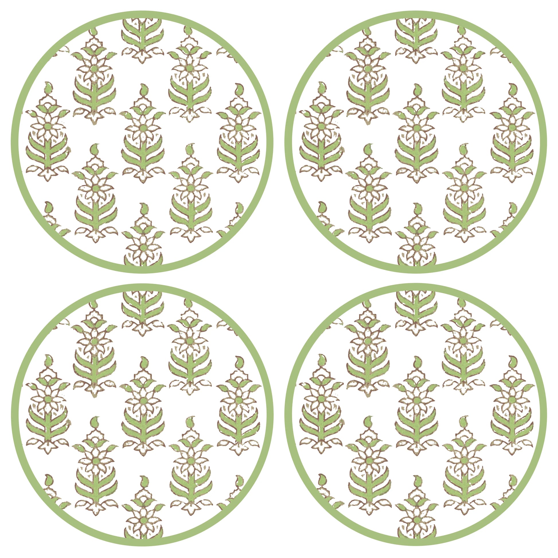 HOLLY STUART LOVES A BLOCK PRINT AND THE RAJ COASTERS ARE THEIR NEWEST ADDICTION. THEY ARE BRIGHT AND FUN AND WORK WELL WITH LOTS OF OTHER PATTERNS.
